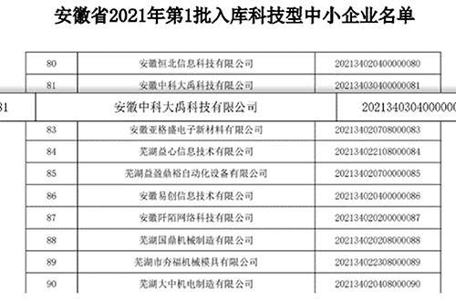 入選安徽省2021年第一批入庫科技型中小企業(yè)