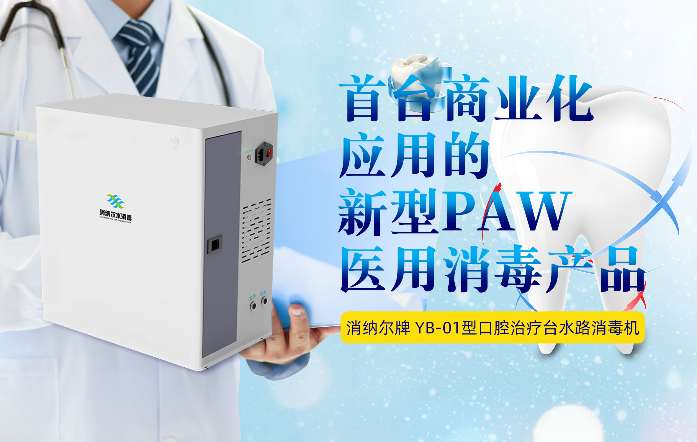 首臺商業(yè)化應(yīng)用的新型 PAW 醫(yī)用消毒產(chǎn)品,消納爾牌口腔治療臺水路消毒機(jī)